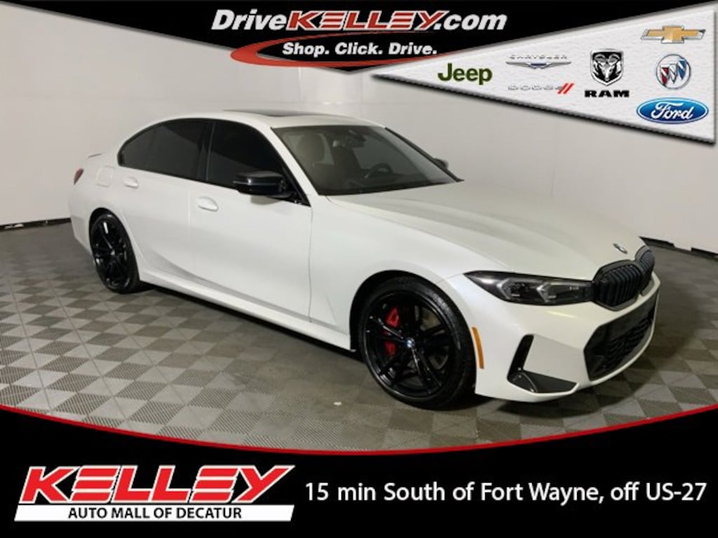 *Clean CARFAX* *CARFAX One-Owner* 2023 BMW 3 Series 330i xDrive Backup Camera, Bluetooth, Lane Change Alert, Leather Seats, Leather Wrap Steering Wheel, Navigation System, Sunroof/Moonroof, Heated Mirrors, Rain Sensing Wipers, Cruise Control, Heated Front Seats, Heated Steering Wheel, Active Blind Spot Detection, Active Driving Assistant, Aerodynamic Kit, Black Mirror Caps, BMW Curved Display w/HUD, Comfort Access Keyless Entry, Connected Package Pro, Driver Lumbar Support, Driving Assistance Package, Extended Shadowline Trim, Exterior Parking Camera Rear, Heated Front Seats, Heated Steering Wheel, Lane Departure Warning System, LED Lights w/Cornering Lights, M Shadowline Lights, M Sport Brakes w/Red Calipers, M Sport Package, M Sport Package (337), M Sport Package Pro, M Sport Suspension, M Steering Wheel, Navigation System, Park Distance Control, Power moonroof, Premium Package, Rear Spoiler, Shadowline Package, Variable Sport Steering, Wheels: 19 x 8 M Double-Spoke Bi-Color Jet Black, Without Lines Designation Outside. 2.0L 4-Cylinder DOHC 16V Turbocharged Mineral White Metallic 24/33 City/Highway MPG Recent Arrival!Where else can you shop 6 brands in one location? We offer new Ford, New Chrysler, Dodge, Jeep and Ram, and New Chevrolet. In addition to a great selection of used pre-owned inventory. Used vehicles as low as $2,999.Why Choose Us? You will receive FREE UNLIMITED CAR WASHES, good at ALL State of the Art Kelley Car Wash Locations, for as long as you own your vehicle! (**2 washes per week equates to an $832.00 value per year!**) Free Car Wash Locations include the 14/69 Auto Mall, Kelley Chevrolet, and Tom Kelley Chevrolet Buick Ford! (Just south of Fort Wayne in Decatur, IN)Kelley Automotive Group is proud to Pre-Apply Forever New Paint Protection to ALL New & Pre-Owned vehicles. To receive the Forever New Limited Warranty, $399 will be added to the purchase price of your Pre-Owned Vehicle. (Kelley Price + $399 (to receive Limited Warranty)