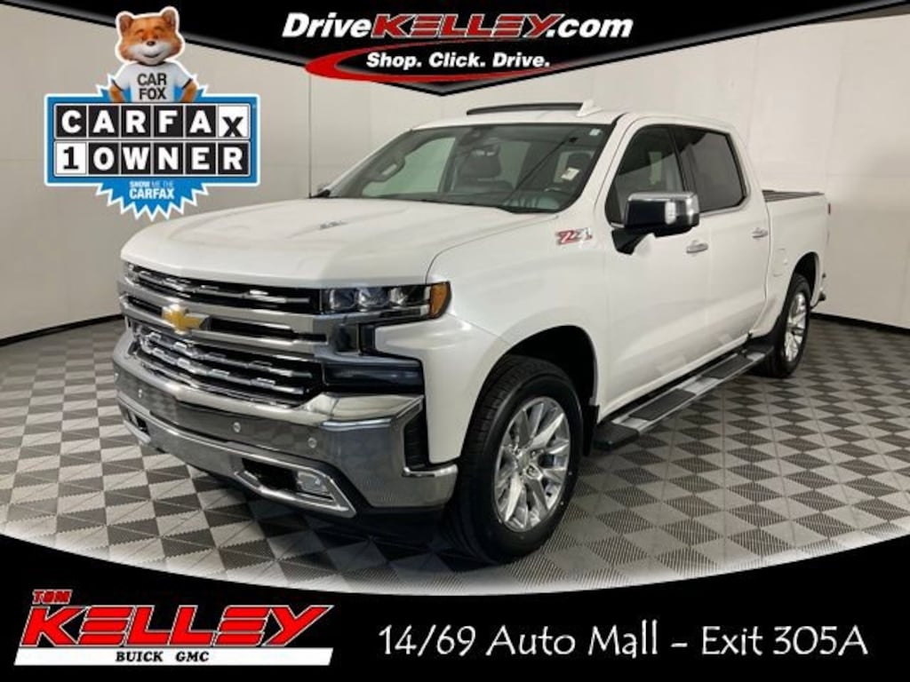 This 2021 Chevy Silverado 1500 LTZ Crew Cab 4WD combines strong V8 performance with refined comfort and advanced technology. Under the hood is the 6.2L V8 delivering 420 horsepower and 460 lb-ft of torque, paired with a 10-speed automatic transmission for smooth, confident power and impressive towing capability.Key Features & Packages:CarFax One OwnerLTZ Premium Package: Power sunroof, Bose® premium sound, ventilated front seats, and rear sliding power windowTechnology Package: 15 multicolor Head-Up Display, HD Surround Vision, and rear camera mirrorZ71 Off-Road Package: Off-road suspension, skid plates, hill descent control, and all-terrain tiresExterior Highlights: Chrome accents, LED lighting, factory running boards, and 20 aluminum wheelsInterior Comfort: Heated/ventilated leather seats, dual-zone climate control, and large 8 Chevrolet Infotainment touchscreen with Apple CarPlay & Android AutoTowing & Capability: Factory trailer brake controller, hitch package, and advanced trailering technologyAt Kelley Automotive, every pre-owned vehicle is professionally treated with Forever New PaintGuard for only $399. This advanced protective coating creates a durable, invisible barrier that shields your vehicle's paint from UV damage, bird droppings, and environmental contaminants, helping preserve that like-new finish. Looking for complete protection? Upgrade to the Forever New Total Protection Package for just $999, which includes: PaintGuard, SoundGuard, RustGuard, LeatherGuard, FiberGuard.When you purchase a vehicle at Kelley Automotive, you'll also receive free car washes for life at any of our three convenient locations, making it easy to keep your vehicle clean and cared for year-round!Need repairs? We've got you covered. Kelley Automotive operates four professional Body Shop locations offering expert collision repair and high-quality service to keep your vehicle looking and driving its best. Experience unmatched protection, maintenance, and service all in one place. Contact your Kelley Automotive representative today to learn more about why we're your one-stop shop for all things automotive.